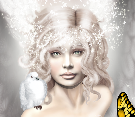 Healing of the Earth Mother. The angel in pink is symbolic of healing and the return of peace and health to the earth and all living beings upon it. Flowing waters indicate abundance and prosperity. Pure clean waters. The fairy to the right of the screen holds a butterfly who has recently emerged from the chrysalis tranformed. The butterfly's purpose will be to pollinate the beneficial plants that add to our health as human beings on this planet. One life benefits another. A little fairy sitis in a daisy playing a tune by the light of the moon as a butterfly attentively rests peacefully. The fairies are the magic and wonder in life, the essence by which beauty and light may be seen and felt at any time of our lives. The magnificence of the creative mind coming to life out of love. I created this piece because so many chemicals are put into this planet year after year. Toxins and pollutants are effecting all life and the pollinators who's purpose is to visit the very same plants that are sprayed to keep "pests" away. We can not effect one life without effecting another. This planet is the heritage of the children of today and these chemicals are effecting our lives too. What we do to the Earth we also do to ourselves and the children of the future. What is happening now globally is not how it is intended by nature. Our survival depends upon the health of this planet and we need to care as parents, mentors, human beings. The butterflies touch my life with thier beauty as do all living beings. One of the most beautiful moments I have ever seen is a child who finds wonder in this magnificantly beautiful world that we live in and I believe we need to preserve and cherish that, we need to care. Simply by changing what products we use in our homes, take some actions to be aware and kinder to the planet, think about what effects we will have over the long term. There is only one earth. She has always brought to me such gratitude by the miracles that touch my life, even something so simple and beautiful as a butterfly. Created with love always:) |